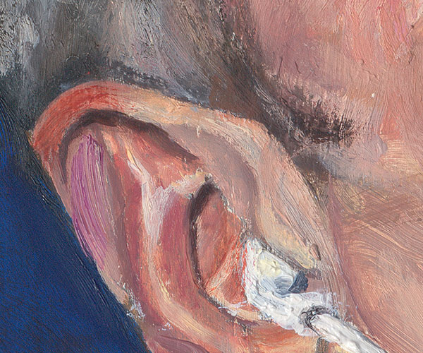 פרטים מתוך: דיוקן לילה, 2014, שמן על בד, 42.5 × 36.9 ס''מ
