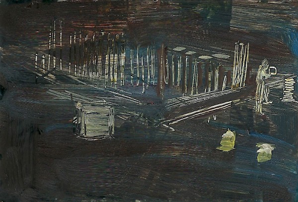 אסף רומאנו, "גשם בדרך הביתה מס' 1", 2010, שמן על עץ, 47X56.5 ס"מ