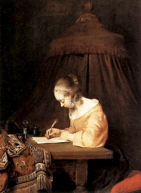 Gerard ter Borch, Woman Writing a Letter, c. 1655, o/p, 39×29.5 cm, The Hague, Mauritshuis
