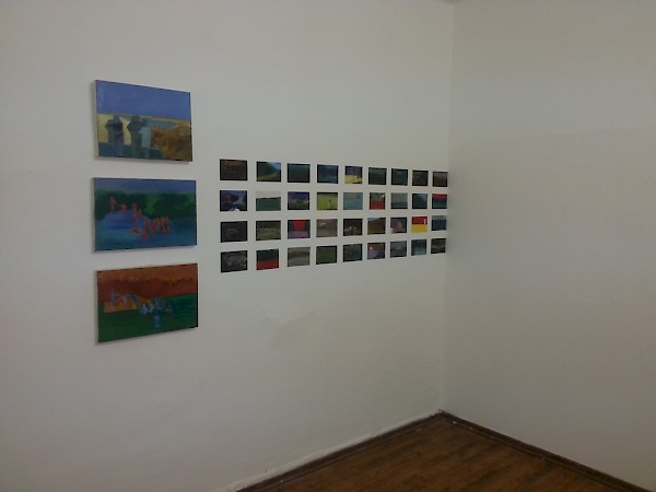 איריס סינטרה משתמשת כבר שנים בתצלומים כחומר הגלם לציורים שלה. זה התחיל מתצלומים של אתרי בניה שיצרה כשהייתה סטודנטית לאמנות. בהמשך הפכו אתרי בניה לאחד מהנושאים השכיחים בתצלומים שלה ואז החלה לצייר על גבי תצלומים כאלה שהוגדלו לגודל של גלויה, כך למשל בעבודה שמופיעה כאן. בהמשך החלה להשתמש כהשראה בתצלומים שעשתה במהלך טיולים משפחתיים, בגלויות שמצאה ובתצלומי ש/ל ישנים מאלבומי המשפחה. על חלק מהתצלומים היא ציירה ואחר כך פיתחה את הנושא פעם אחר פעם בציורי שמן על בד, כשהבדים הולכים ונעשים גדולים יותר ויותר. בתהליך זה משמש התצלום המקורי כמו נגטיב בידי הצלם – הוא המקור ועל פיו היא מגדילה כל העת את הנושא כשהמטרה היא בסופו של דבר להגיע לפורמטים גדולים ככל האפשר.