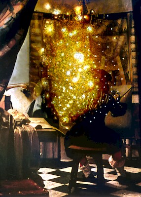 מייקל ספאנו צילם את התצלום הזה באמצעות מצלמה פנוראמית (Widelux) שהעדשה שלה מסתובבת בזמן החשיפה ויוצרת זווית קליטה של 140 מעלות ומסגרת (פריים) ביחס של 1X3. ההשוואה הזאת מחזקת את ההנחה שגם הצייר ההולנדי בן המאה ה-17 עשה שימוש במכשיר אופטי אשר תרם לעיוות תמונת המציאות בציור שלו.