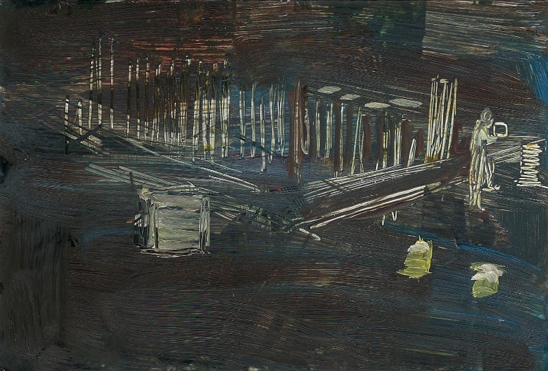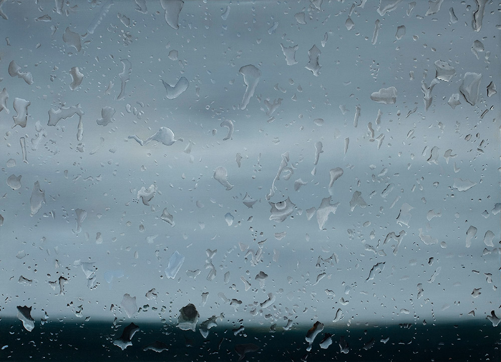 אסף רומאנו, "גשם בדרך הביתה מס' 1", 2010, שמן על עץ, 47X56.5 ס"מ