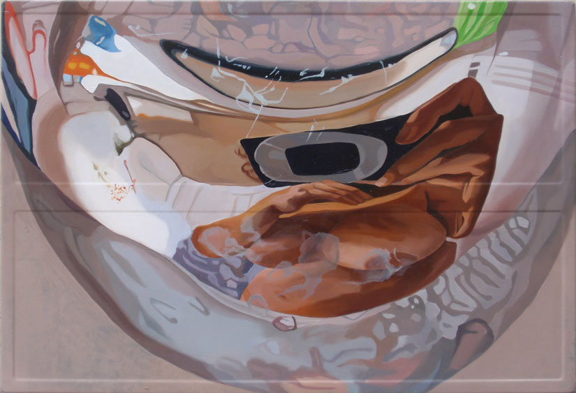 נעמי מנדל, "עירום על ברז מס' 1", 2010, שמן על פח, 45X65 ס"מ