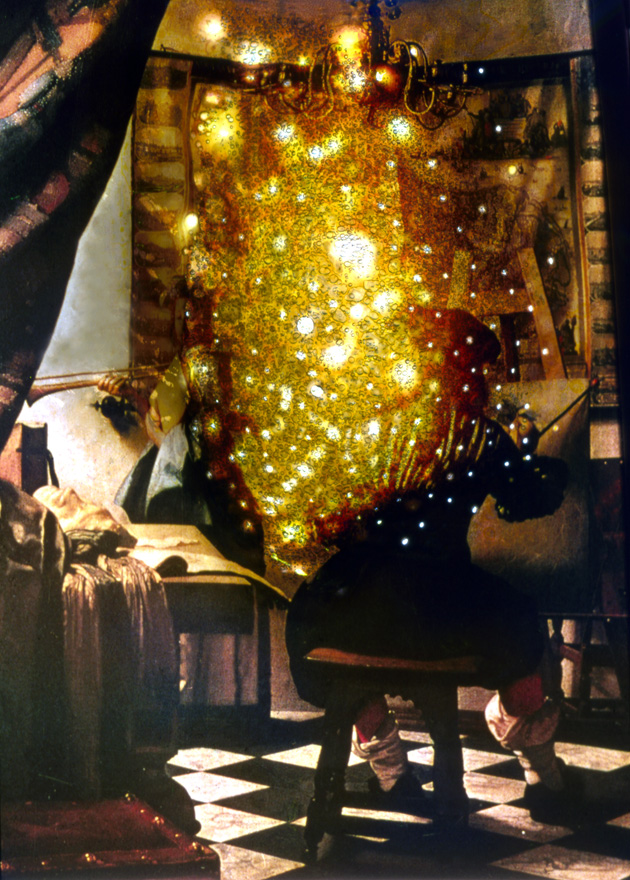 מייקל ספאנו צילם את התצלום הזה באמצעות מצלמה פנוראמית (Widelux) שהעדשה שלה מסתובבת בזמן החשיפה ויוצרת זווית קליטה של 140 מעלות ומסגרת (פריים) ביחס של 1X3. ההשוואה הזאת מחזקת את ההנחה שגם הצייר ההולנדי בן המאה ה-17 עשה שימוש במכשיר אופטי אשר תרם לעיוות תמונת המציאות בציור שלו.